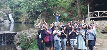 Sesampainya di curug, kebersamaan dimulai dengan ibadah Minggu. Ibadah dilakukan sambil menyaksikan dan menikmati keindahan alam. Ditemani angin sepoi-sepoi, sinar cerah matahari, kicauan burung dan suara hewan-hewan lain, serta suara aliran air, OHers bersama-sama memuji dan memuliakan Tuhan. Dengan tema “Tuhan, Alam, dan Manusia” OHers belajar bagaimana seharusnya manusia berinteraksi, menjaga, dan memberikan perhatian ke alam, seperti perintah Tuhan untuk menjaga dan mengusahakan bumi.