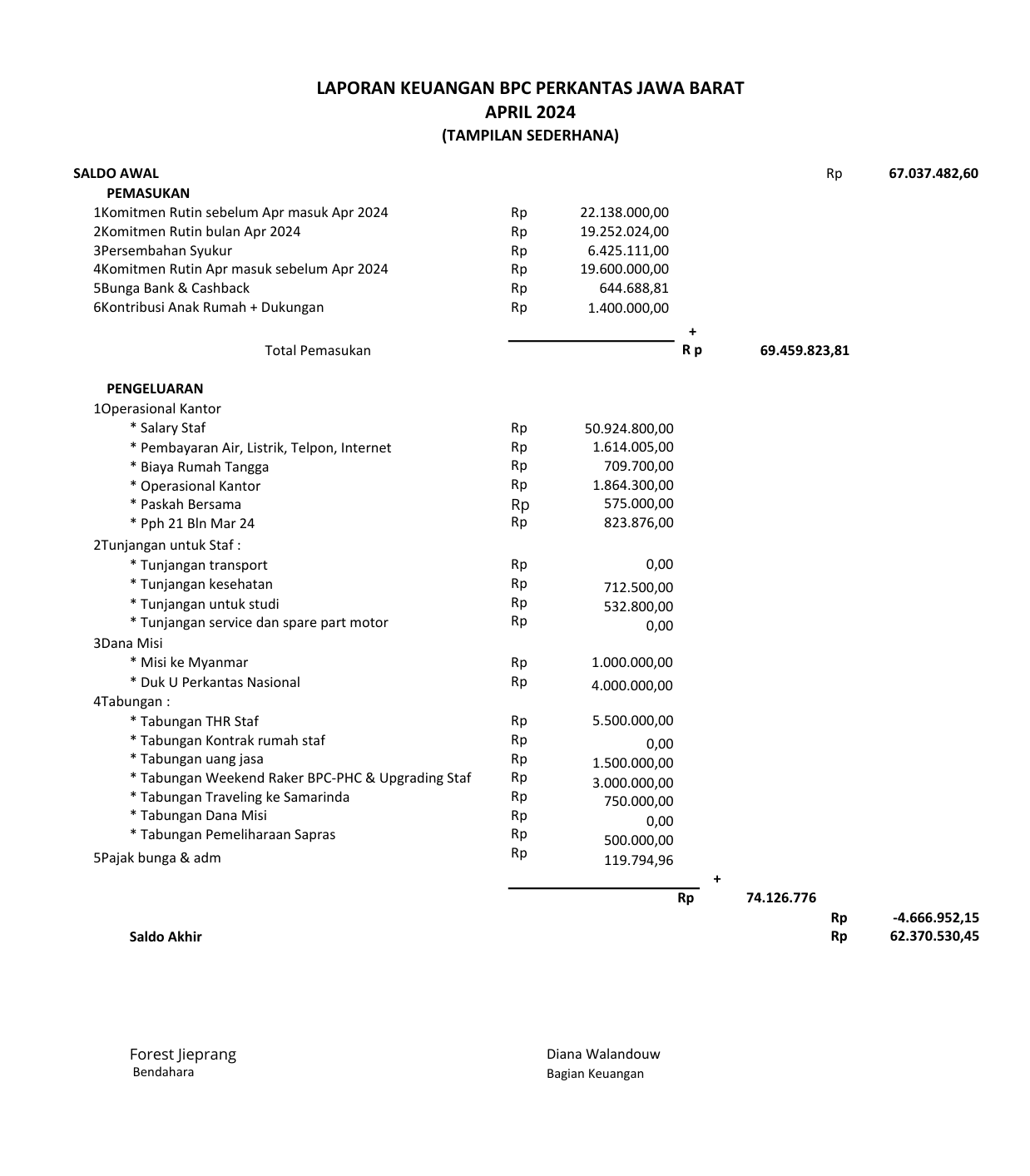 Laporan Keuangan April 2024