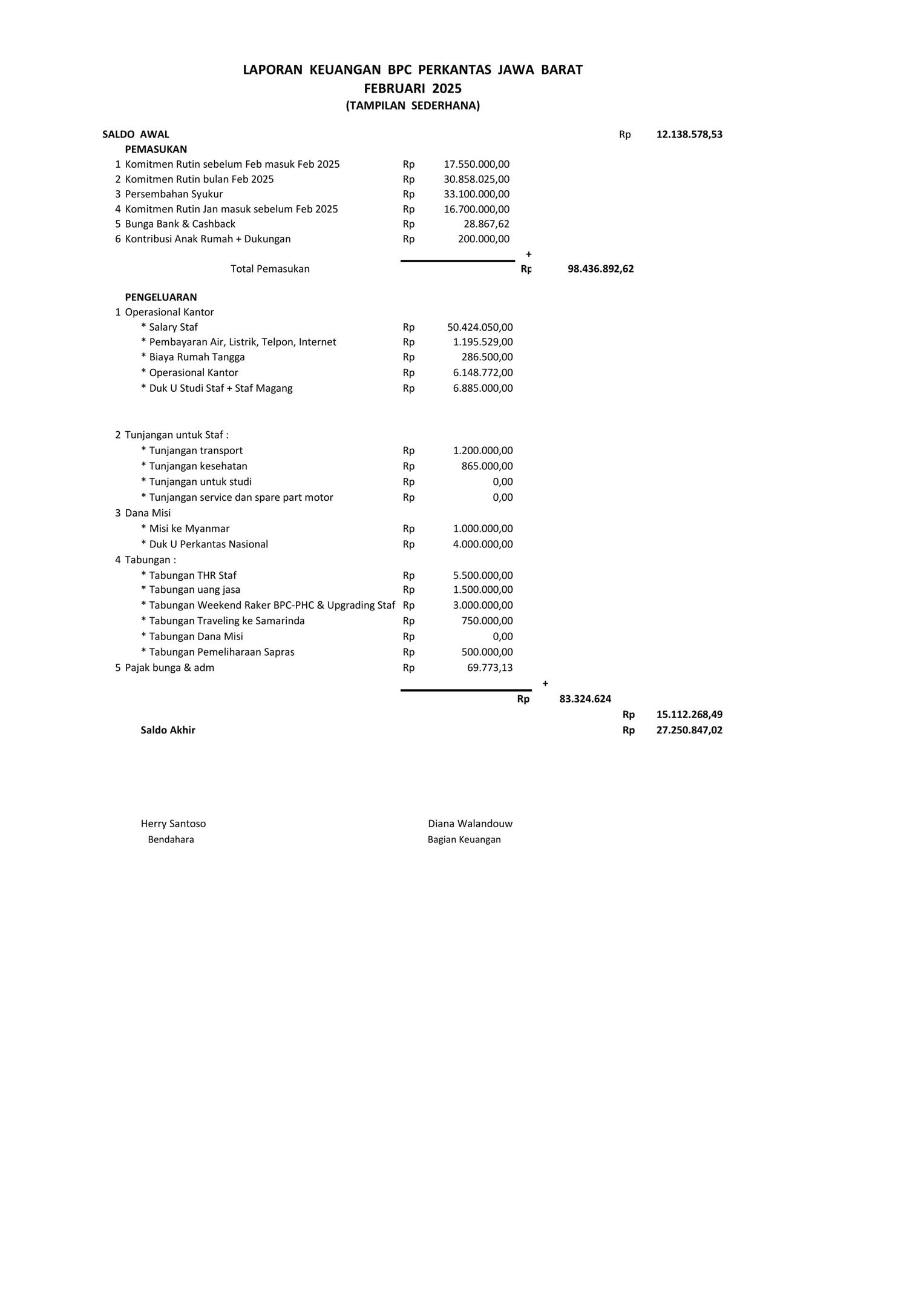 Laporan Keuangan Februari 2025