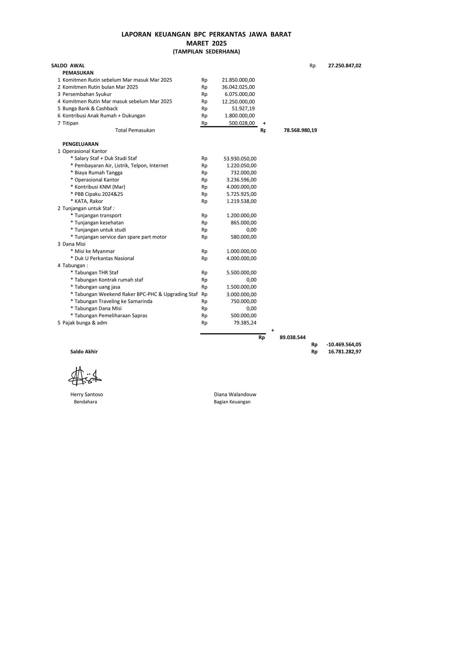 Laporan Keuangan Maret 2025