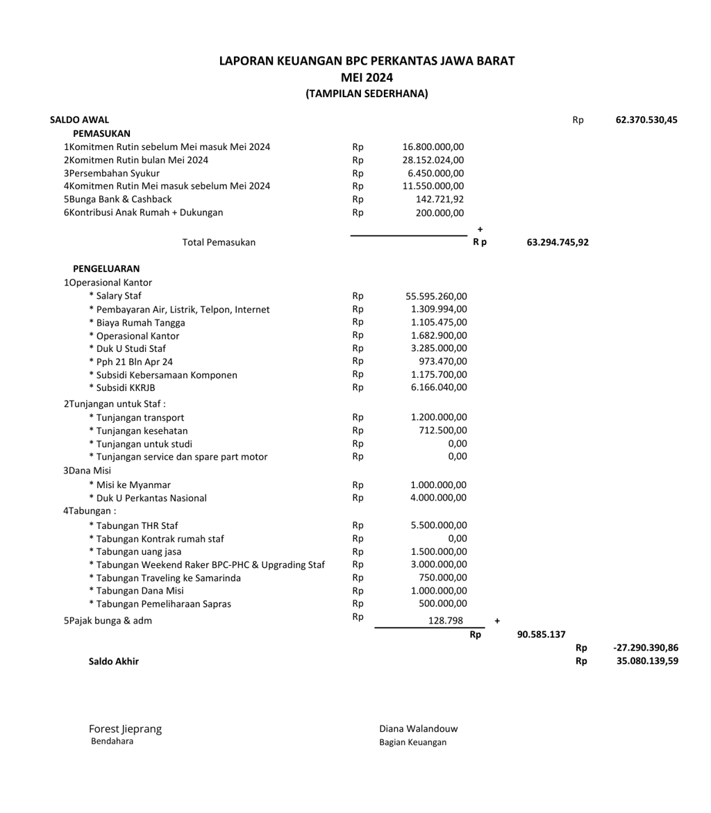 Laporan Keuangan Mei 2024