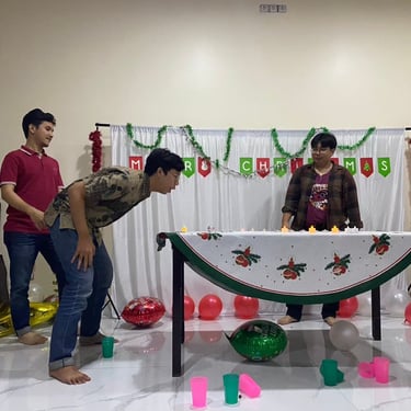 Acara dimulai dengan nyanyi-nyanyi bersama lagu-lagu Natal yang ikonis, seperti Feliz Navidad. Semua peserta bernyanyi dengan semangat, menyebarkan atmosfer Natal yang penuh kehangatan. Gerakan pun semakin meriah dengan dipandu oleh tiga bintang ekspresif kita: Satria, Raja, dan Enrico! Mereka bukan hanya memimpin gerakan, tapi juga menyuntikkan energi luar biasa ke dalam acara.